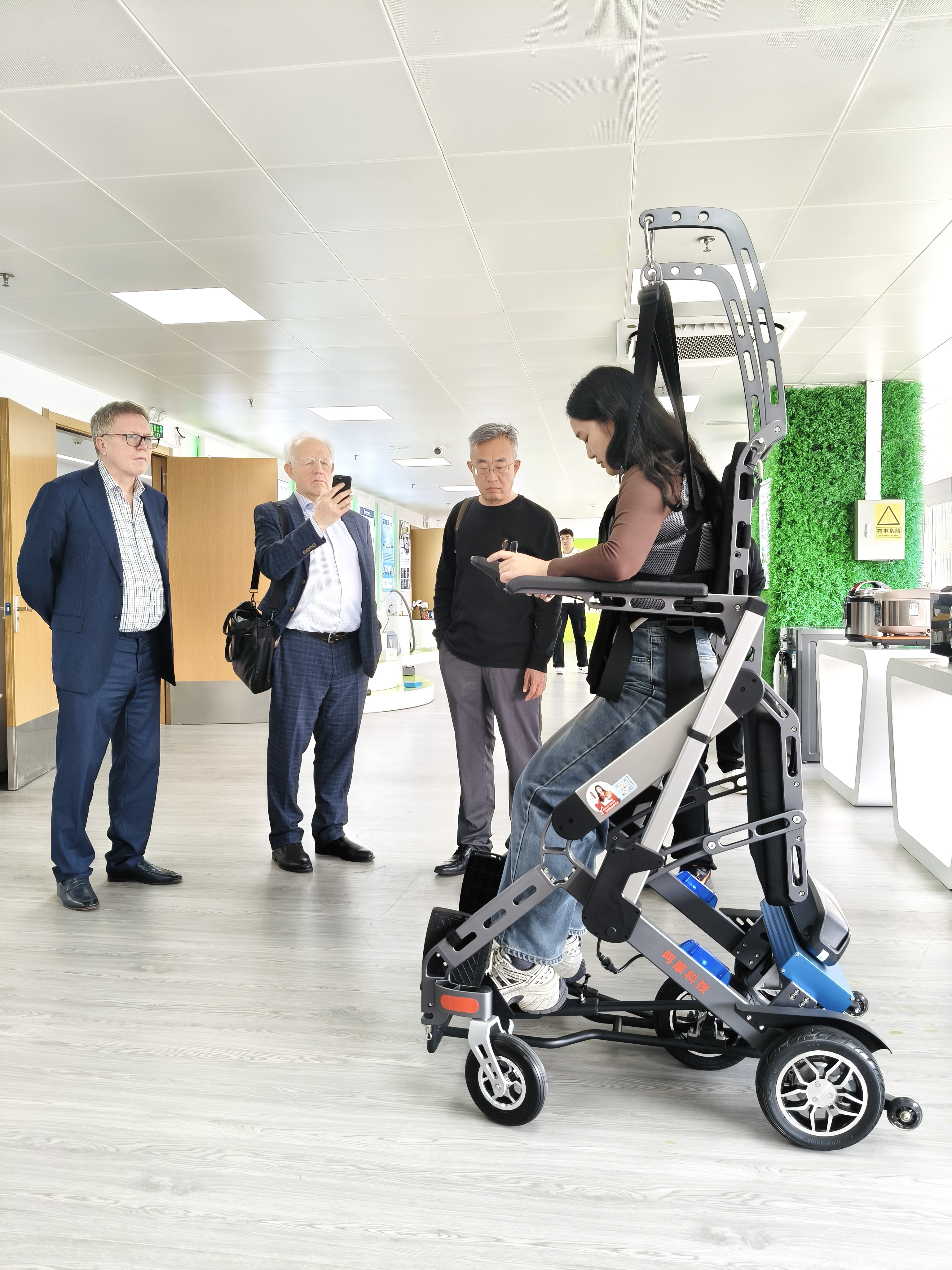 作为孵化空间内专注于无障碍智能装备研发的企业,呵康科技在此次考察活动中展示了核心产品辅助行走机器人。