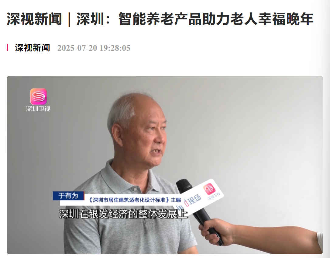 参观过程中,《深圳市居住建筑适老化设计标准》主编于有为向深圳卫视记者展开了深入阐述,他谈到了目前深圳市银发经济发展态势良好,如今大家也越来越关注适老化产品的研发和生产。