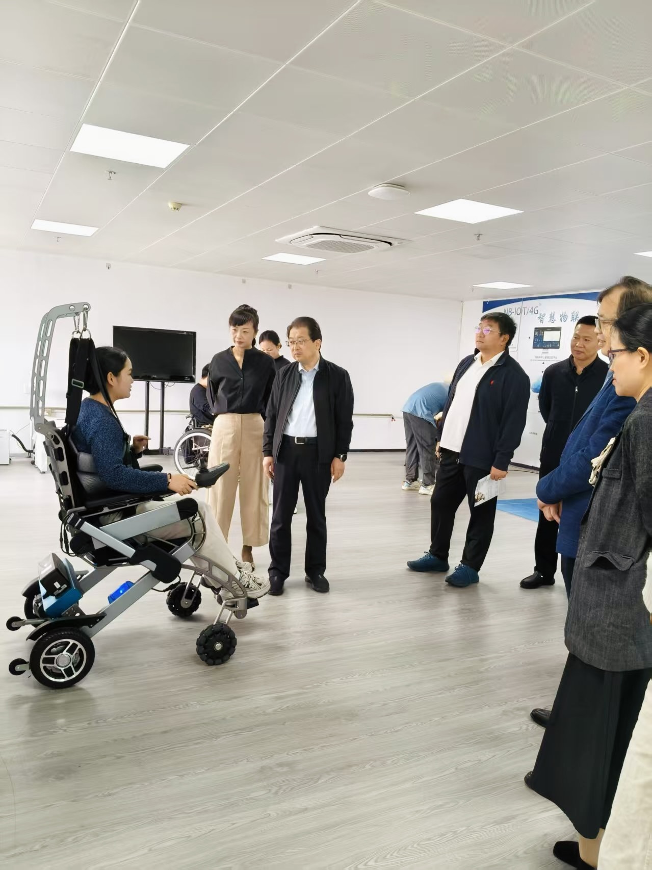 考察当日,无锡领导一行在孵化空间负责人的陪同下,先后参观了空间内的 “无障碍科技成果展区”“助残产品体验中心”。