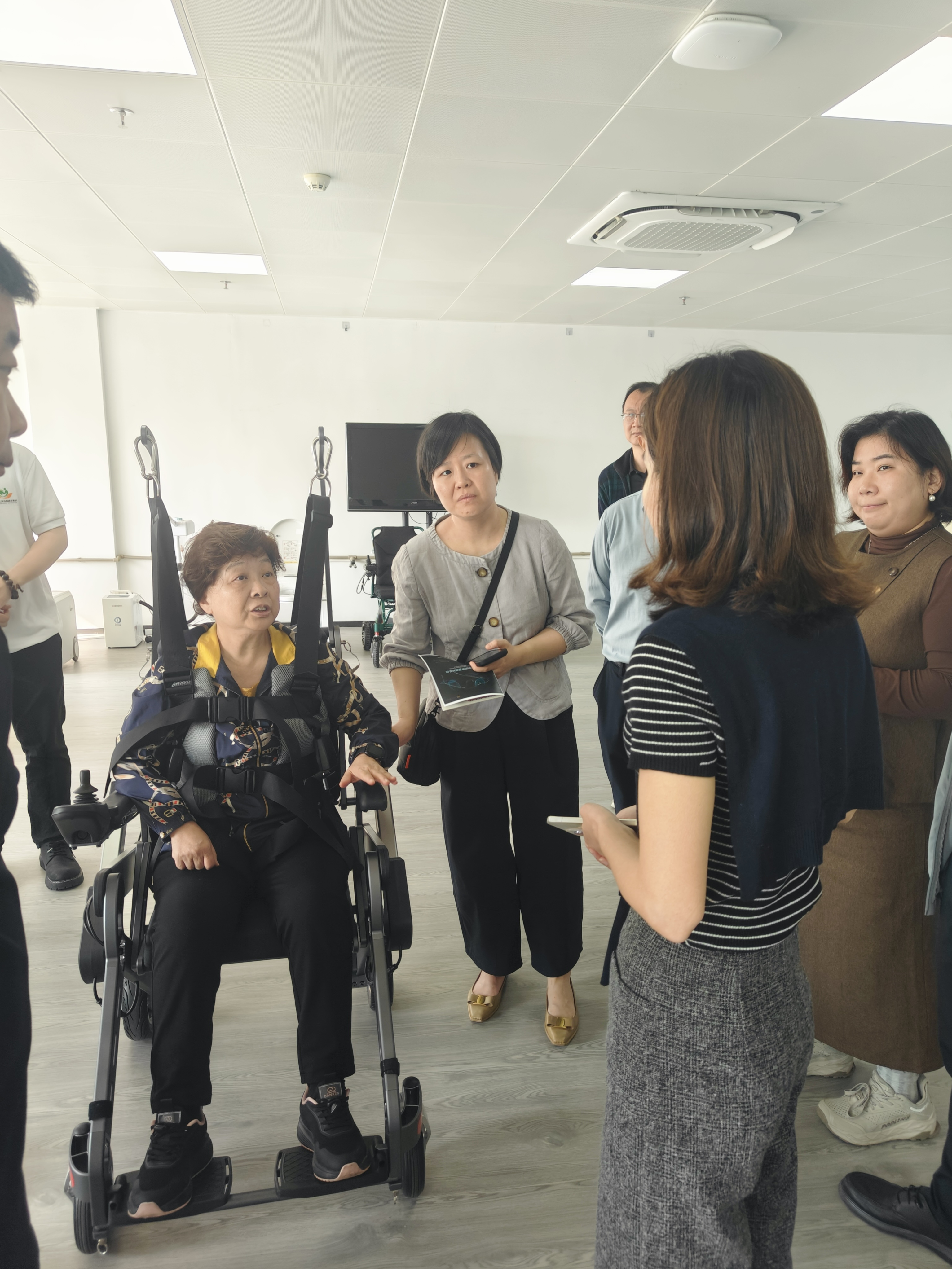 为了更直观地感受产品效果,领导们亲身体验了辅助行走机器人。体验结束后,武汉市残疾人康复服务中心的领导们感慨道,“这样的产品真正解决了残障人士出行的痛点,让他们能够更有尊严地生活。”
